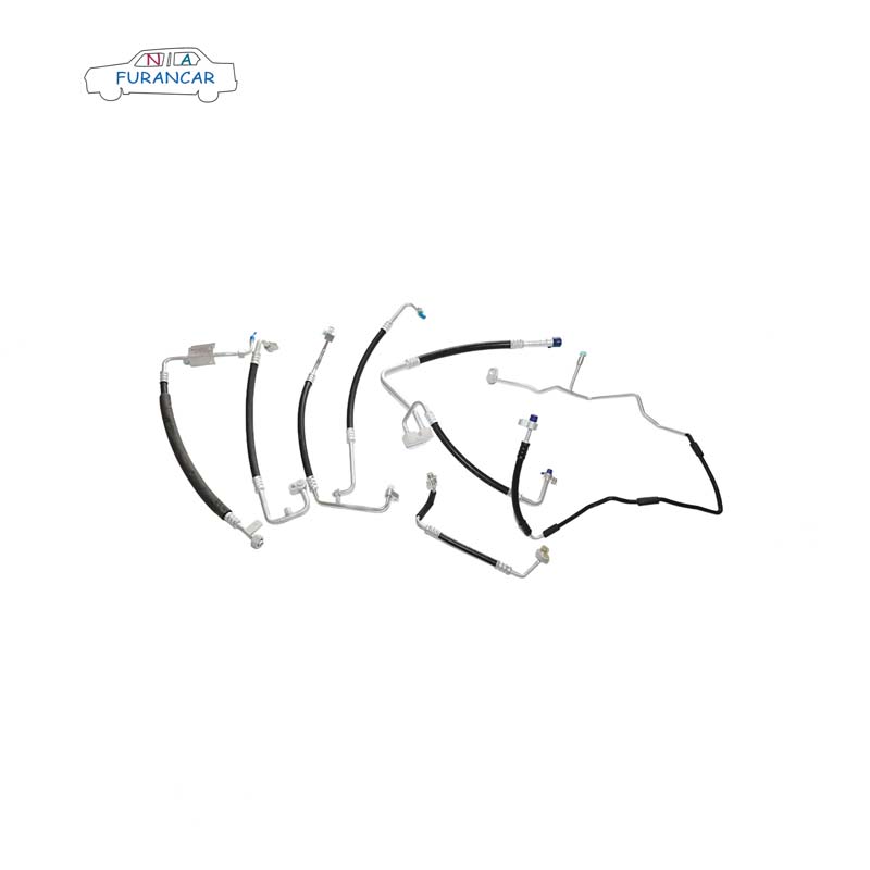 The air conditioning piping system comprises key components such as aluminium tubing, flexible hoses, and pipe fittings, which collectively connect all elements of the air conditioning system. Aluminium tubing and flexible hoses are tightly joined via crimping techniques, though minor variations in crimp dimensions may exist between different models and manufacturers. To mitigate potential damage from engine vibration, flexible rubber hoses are employed for the lines connecting the compressor's suction and discharge ports. Their flexible design effectively absorbs vibrations, enhances system sealing integrity, and extends the service life of the piping. Many manufacturers have also developed nylon air conditioning hoses, which are utilised in mass-produced vehicle models.